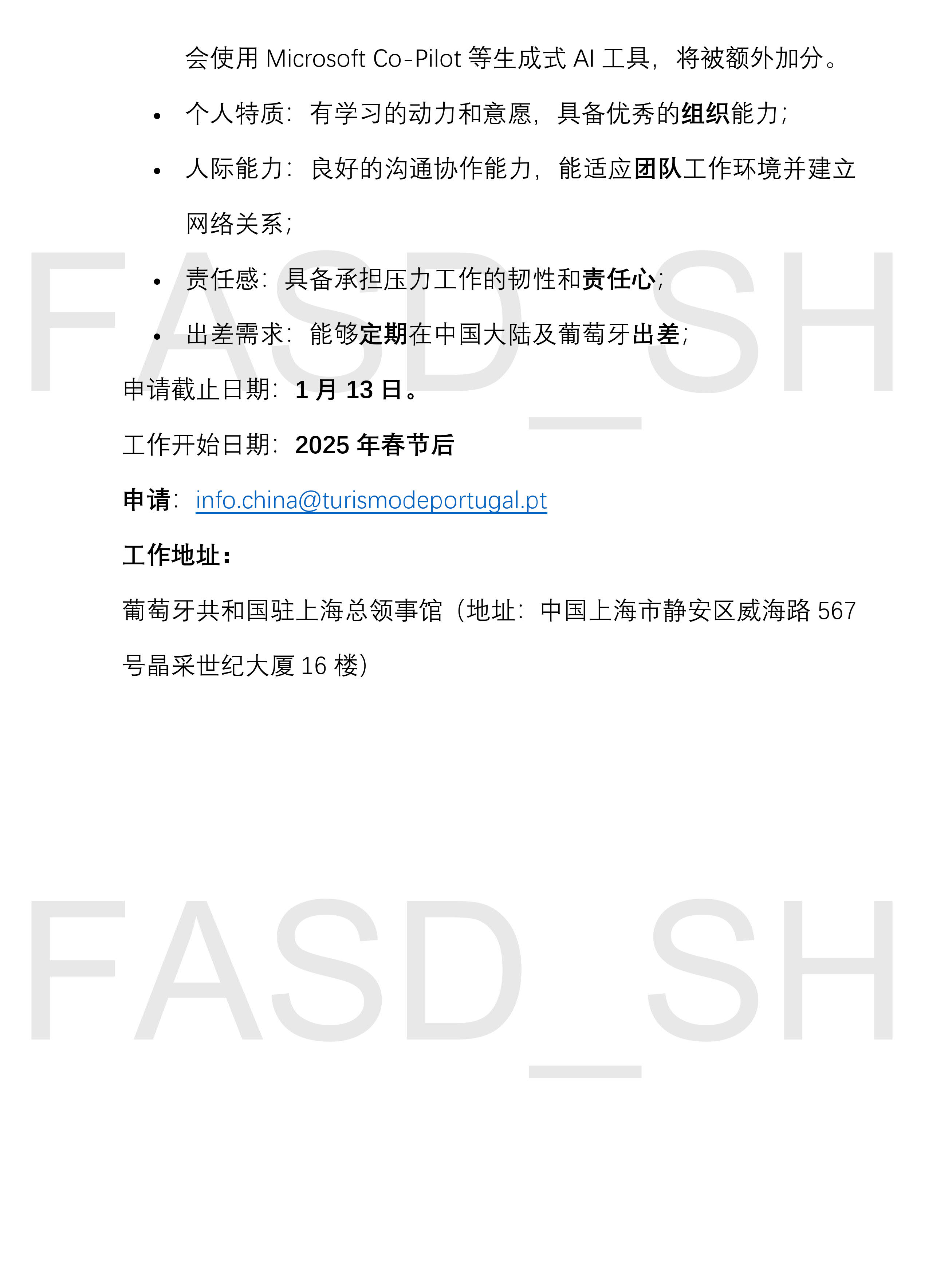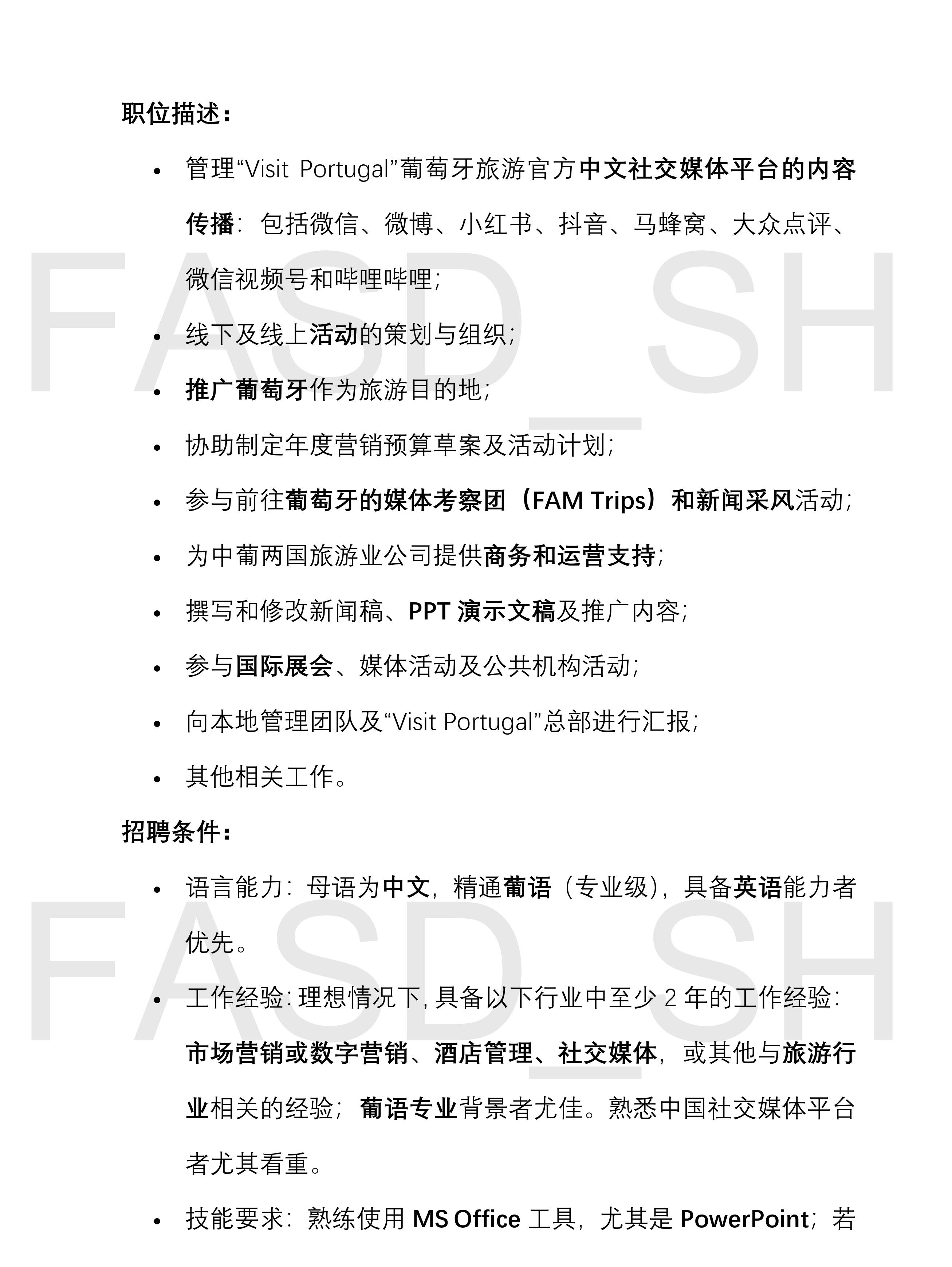 【招聘中国籍雇员】葡萄牙驻上海总领事馆旅游处产品经理
